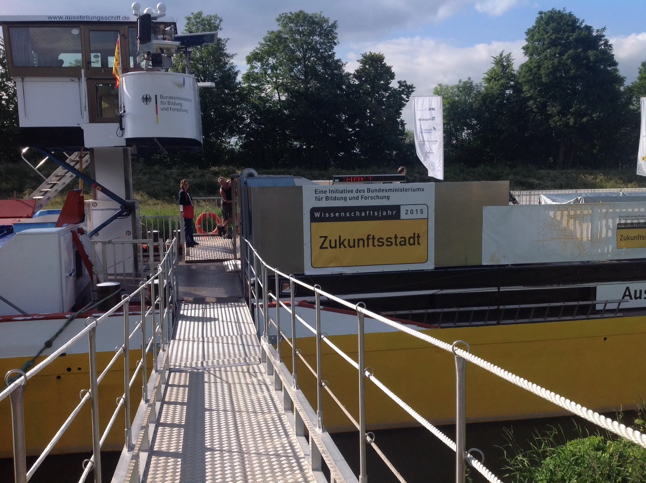 In diesen Tagen liegt das Binnenschiff in Hamm vor Anker. Die Stadt Hamm und das Wissenschaftsjahr hatten aus dem Anlass zum „Dialog an Deck“ eingeladen. Das Thema lag nahe „Smart City – Wie lebt es sich in der vernetzten Stadt?“